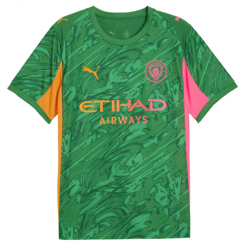 Danxen Mann Manchester City Grønn Oransje Keeperdrakt 2025/26 Skjorter T-skjorte