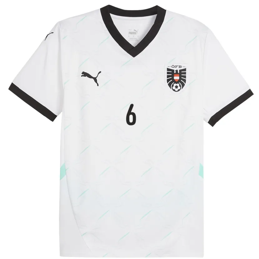 Danxen Mann Østerrike Katharina Schiechtl #6 Hvit Bortetrøye Drakt Trøye 24-26 Skjorter T-Skjorte